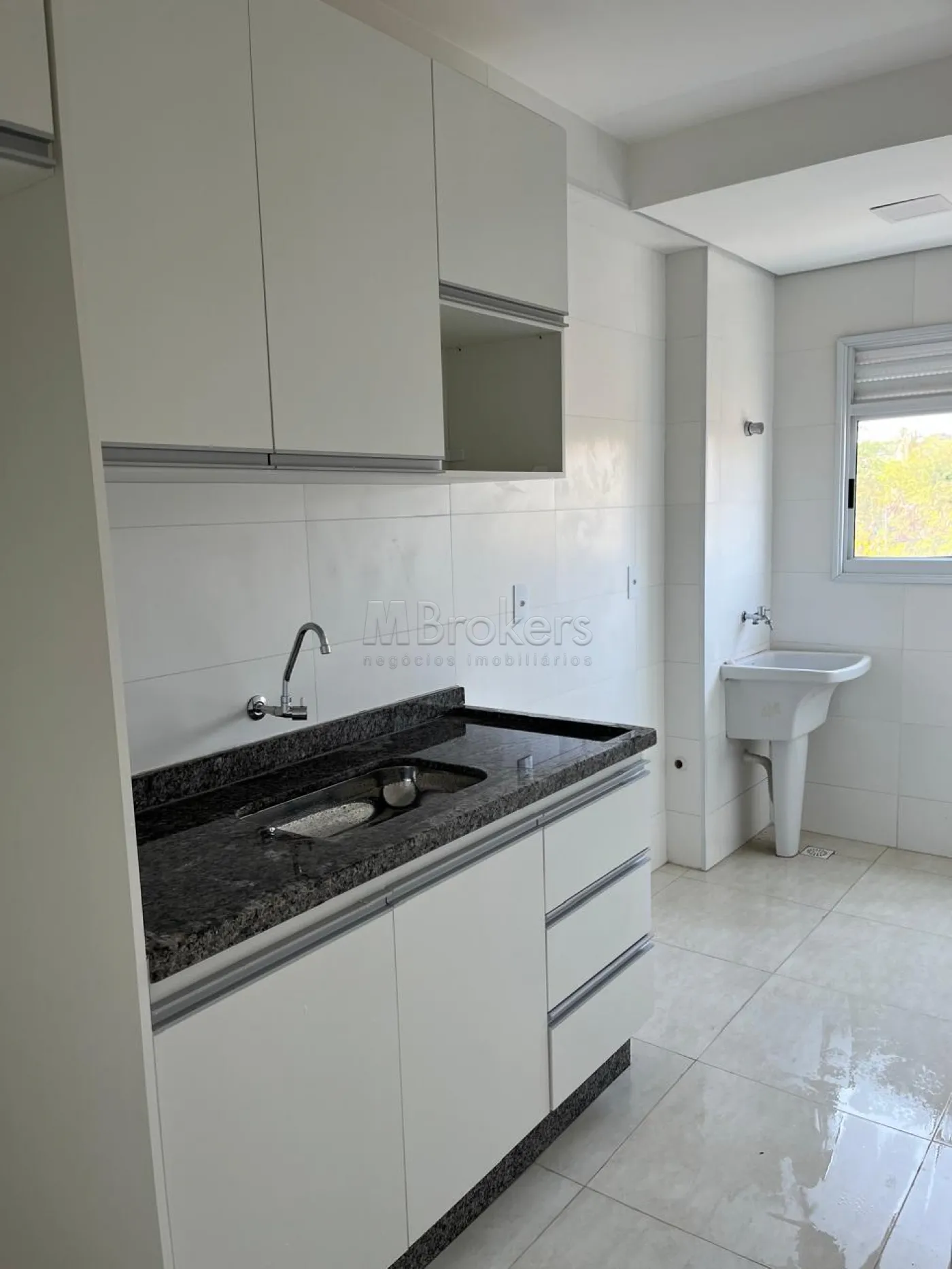 O apartamento é completo em armários na cozinha e nos quartos, e também possuem: ar condicionado, mesa, cadeira, sofá, chuveiro, sendo dois dormitórios, sala de estar e jantar integradas, cozinha, banheiro social e área de serviço. O acabamento é completo, com piso laminado nos quartos e sala, porcelanato na cozinha e banheiro, além de esquadrias em alumínio e portas em madeira sendo uma vaga de garagem descoberta.