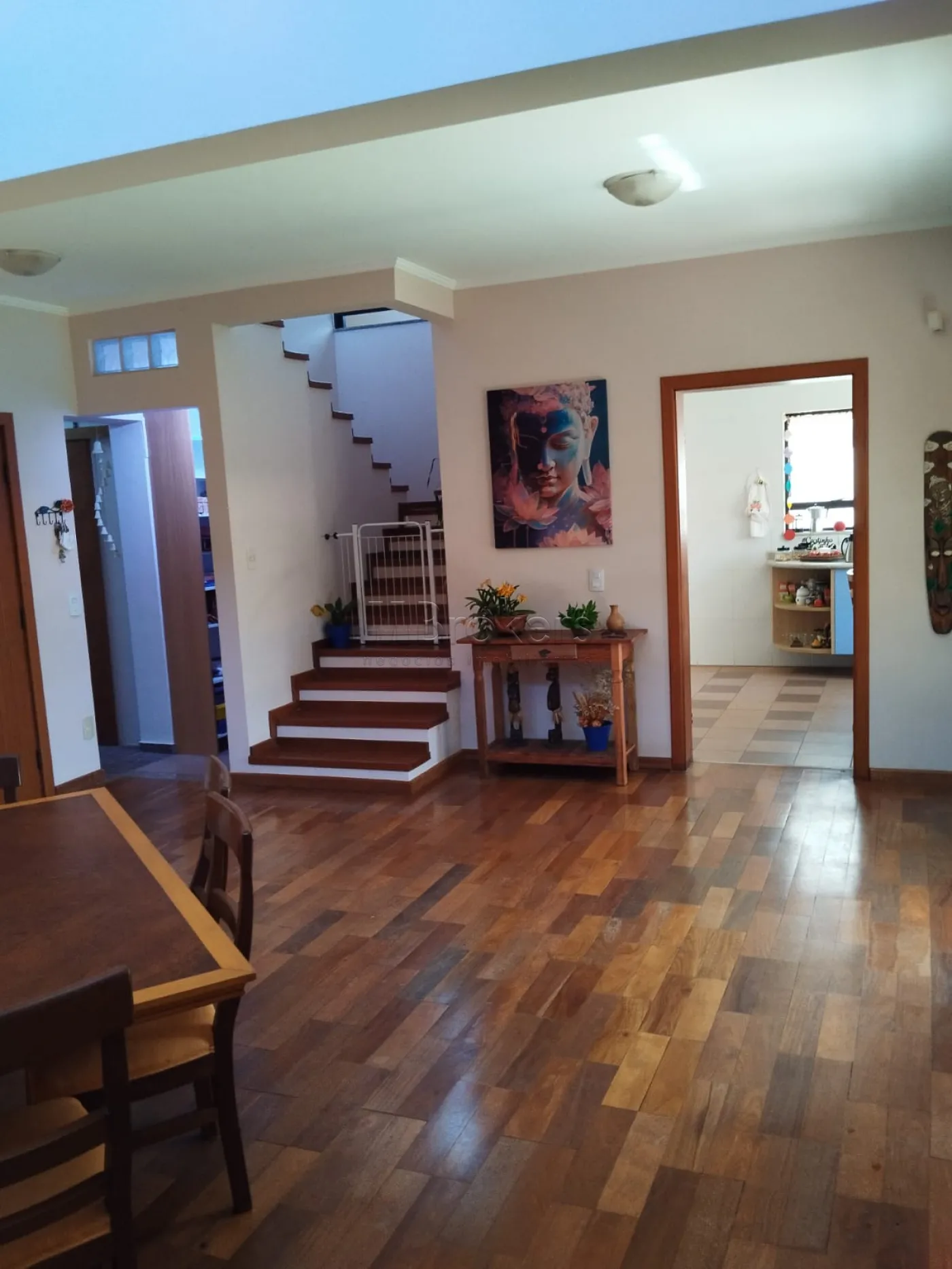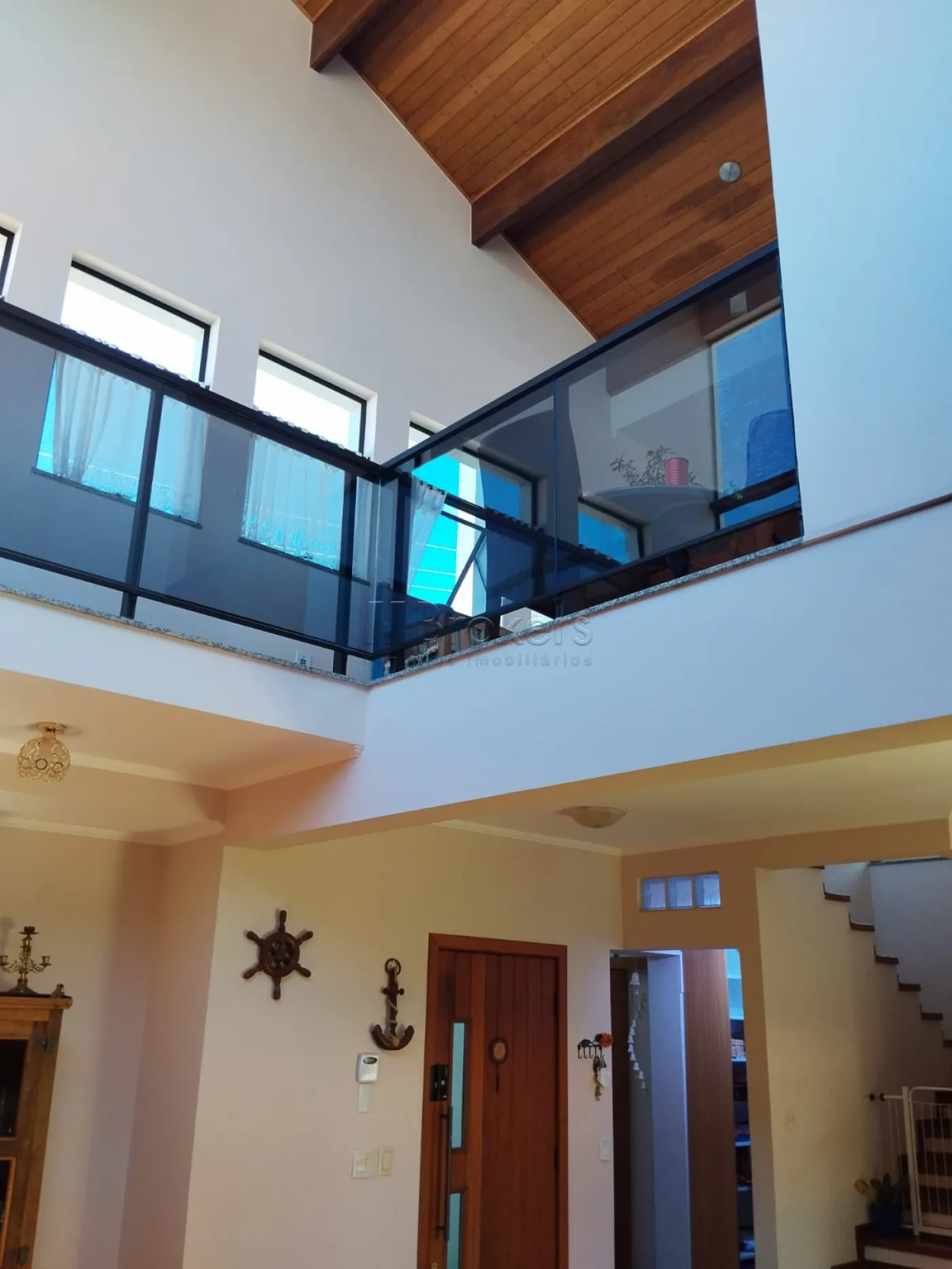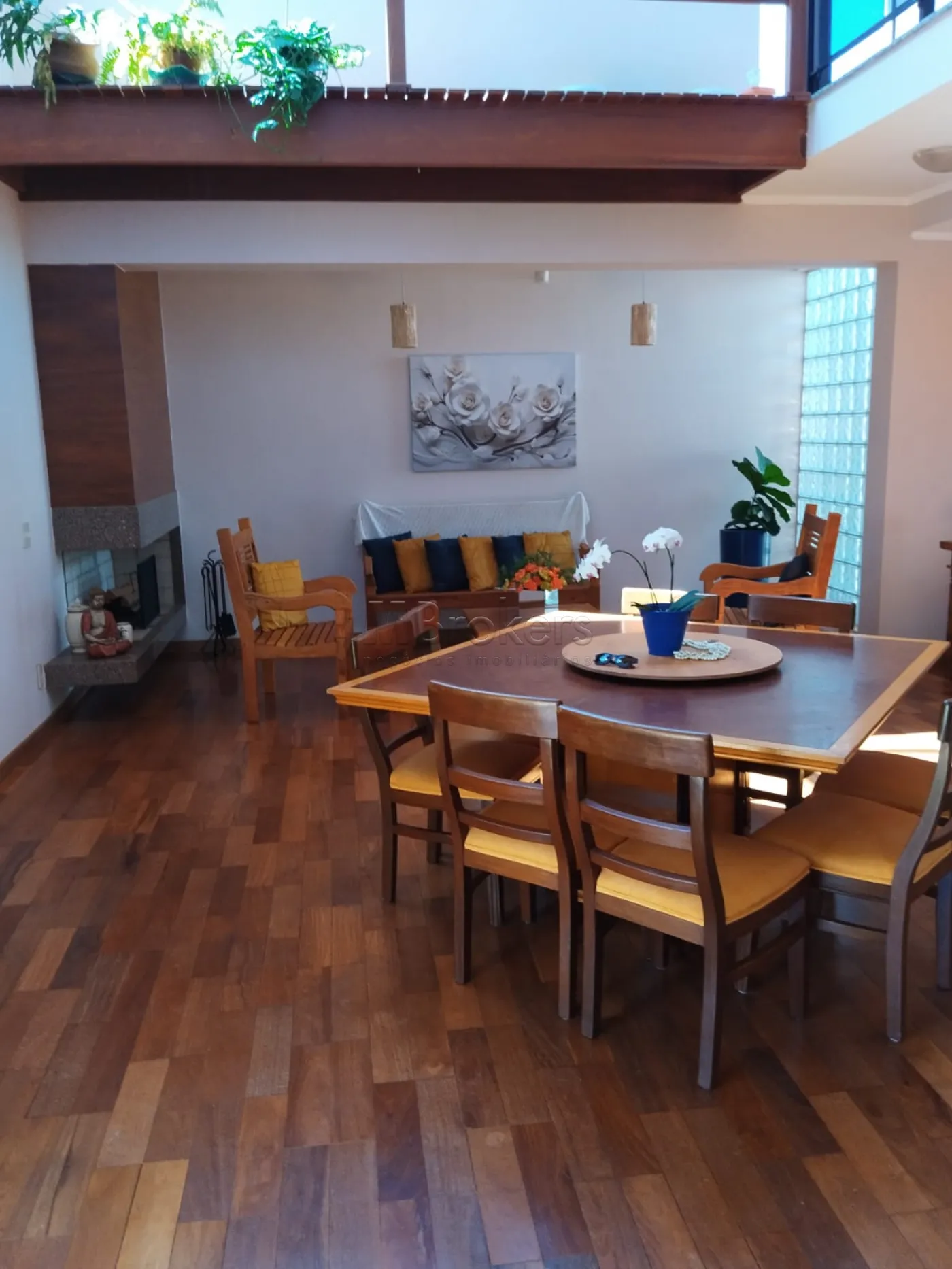 No pavimento inferior Possui, 1 suite com clôset, banheiro social, lavabo, salas com pé direito alto com janelas que lhe permite admirar o nascer do sol e ao cair da noite as estrelas, muita luz natural, Ampla sala de estar com lareira, sala de jantar, cozinha espaçosa toda planejada, lavanderia, despensa.