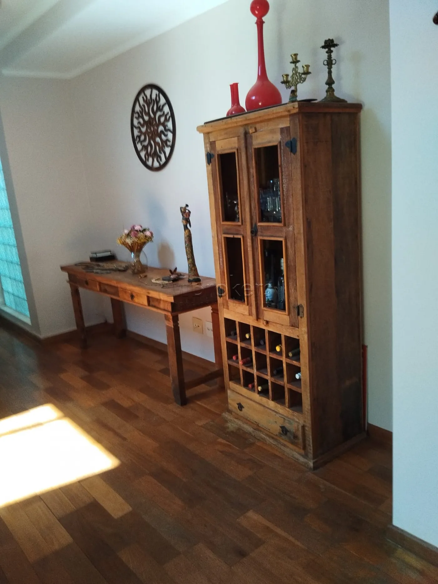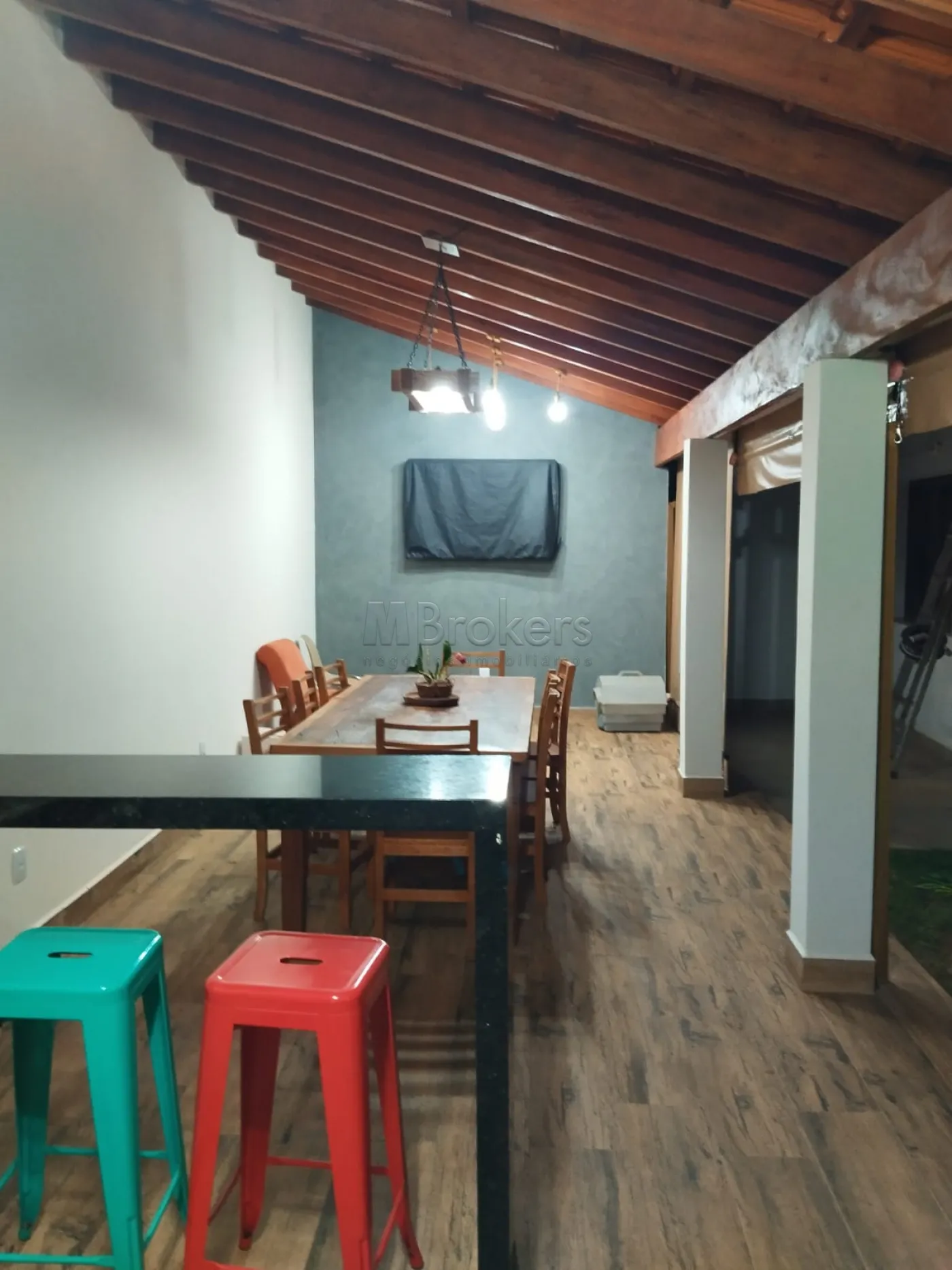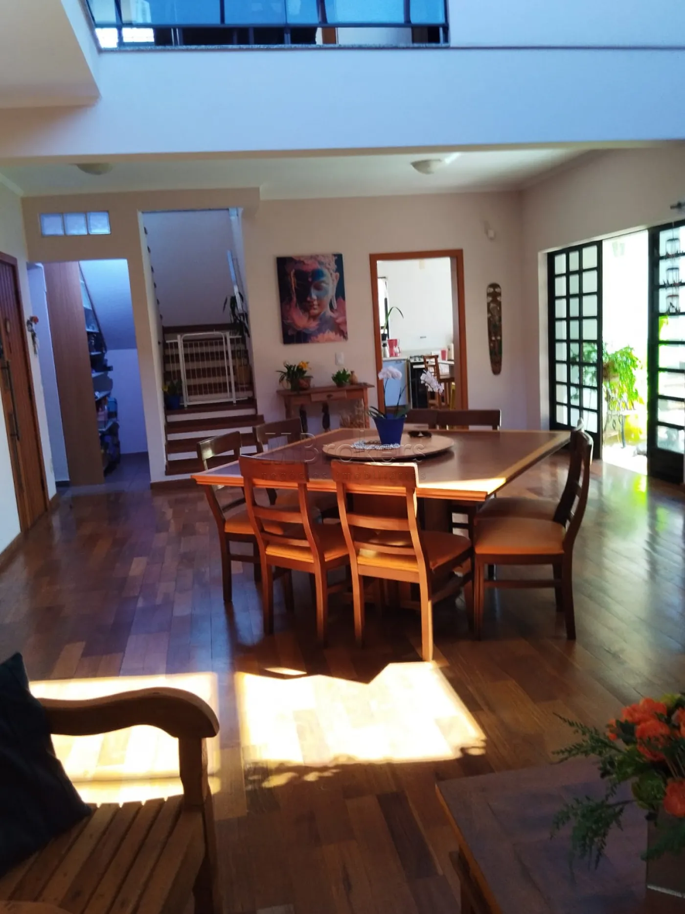 No pavimento inferior Possui, 1 suite com clôset, banheiro social, lavabo, salas com pé direito alto com janelas que lhe permite admirar o nascer do sol e ao cair da noite as estrelas, muita luz natural, Ampla sala de estar com lareira, sala de jantar, cozinha espaçosa toda planejada, lavanderia, despensa.