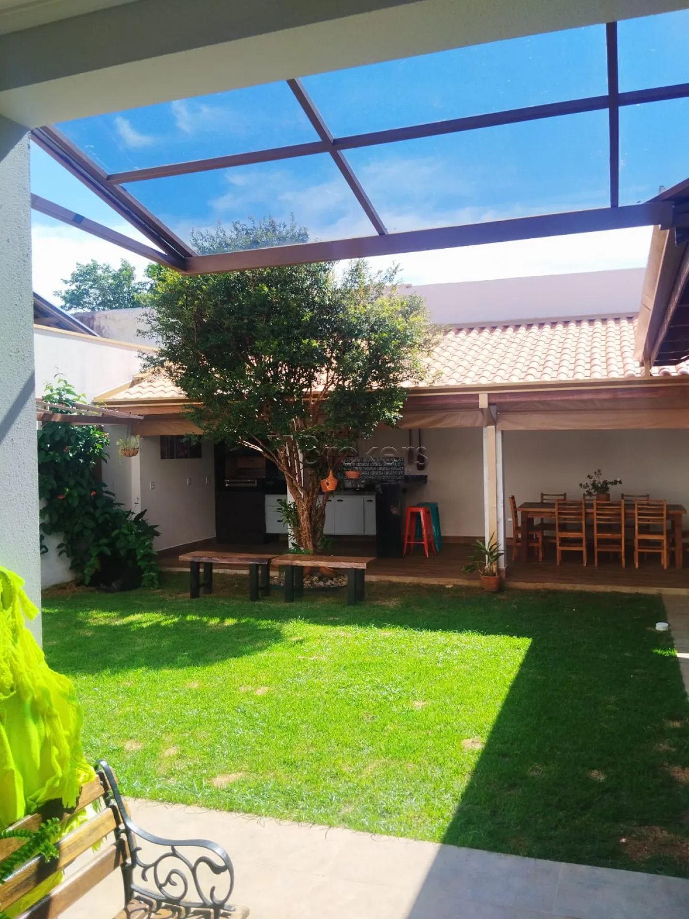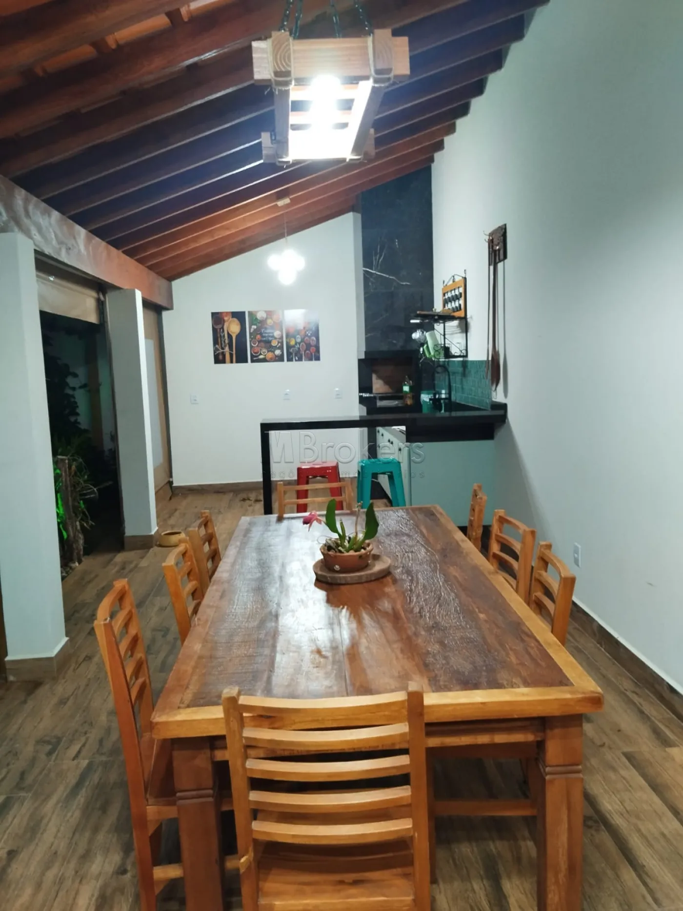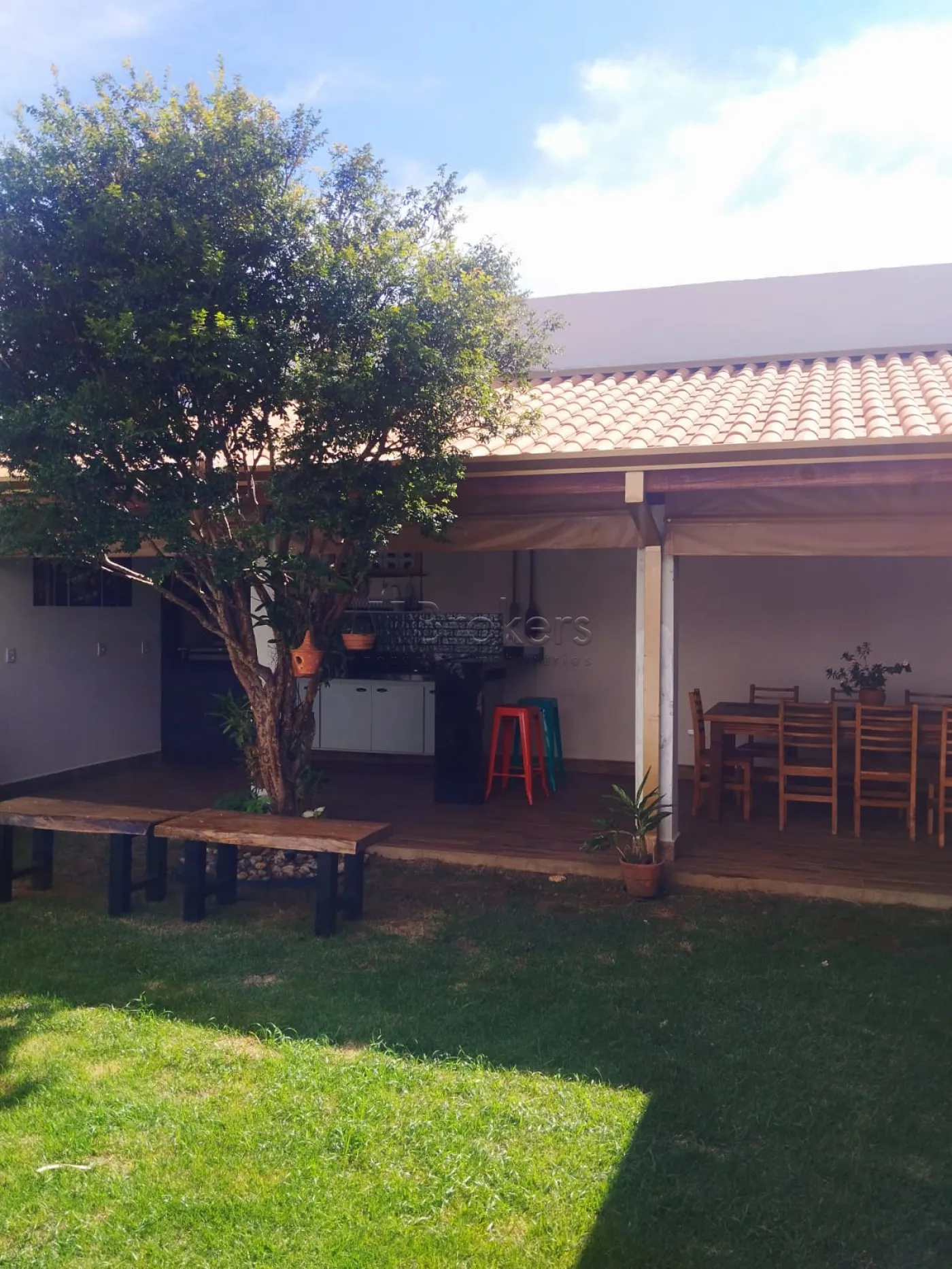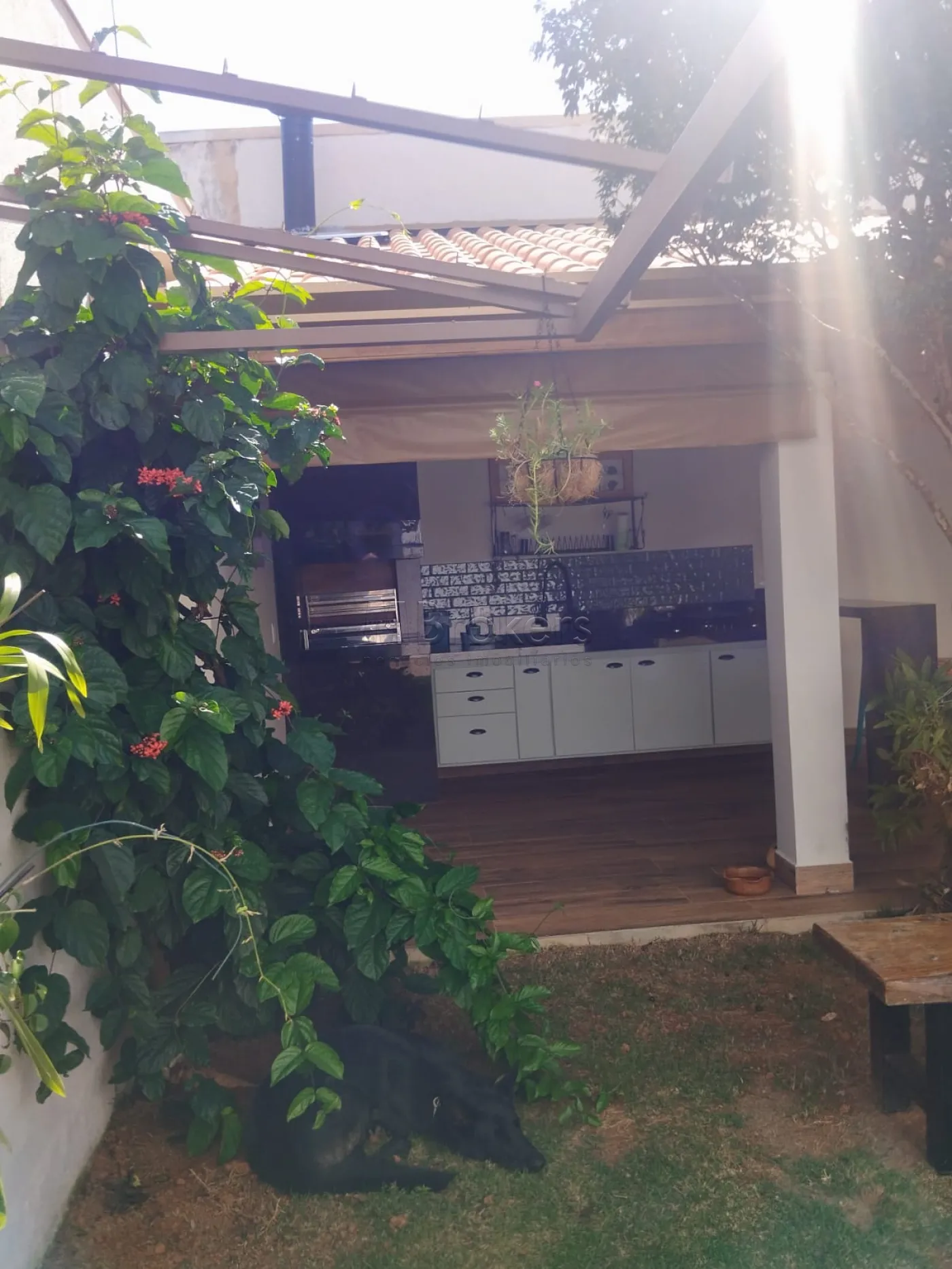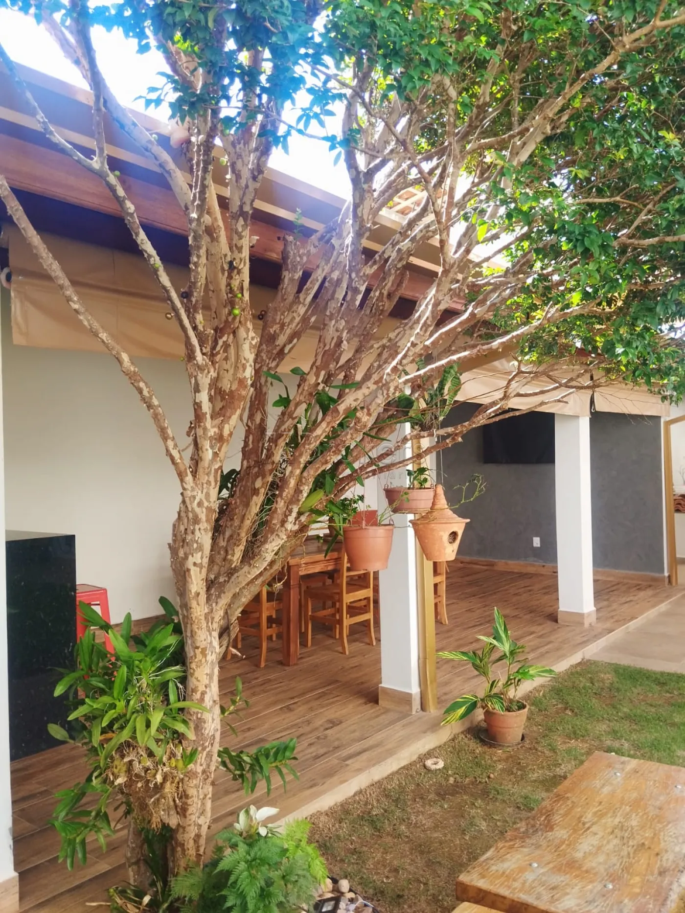 Na parte externa uma bela e confortável Área gourmet com churrasqueira toda planejada com cooktop, quarto de serviços, quintal com gramado, com orquidário e jabuticabeira produzindo.